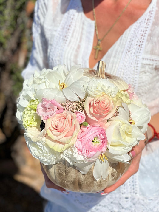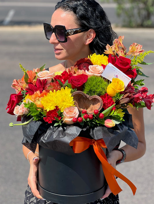 As the leaves turn into a mesmerizing tapestry of reds, oranges, and golds, and a gentle chill graces the air, it's the perfect time to "Fall in Love" with our exquisite collection of autumn flower arrangements. Our talented florists in Scottsdale have curated a selection that captures the heartwarming essence of fall. Each arrangement is meticulously crafted to showcase the rich, earthy hues and textures that define this enchanting season. Explore a variety of arrangements that feature nature's bounty, including bountiful sunflowers, enchanting cream roses, and the deep maroons of ranunculuses. These flowers blend seamlessly with the changing landscape outdoors.
