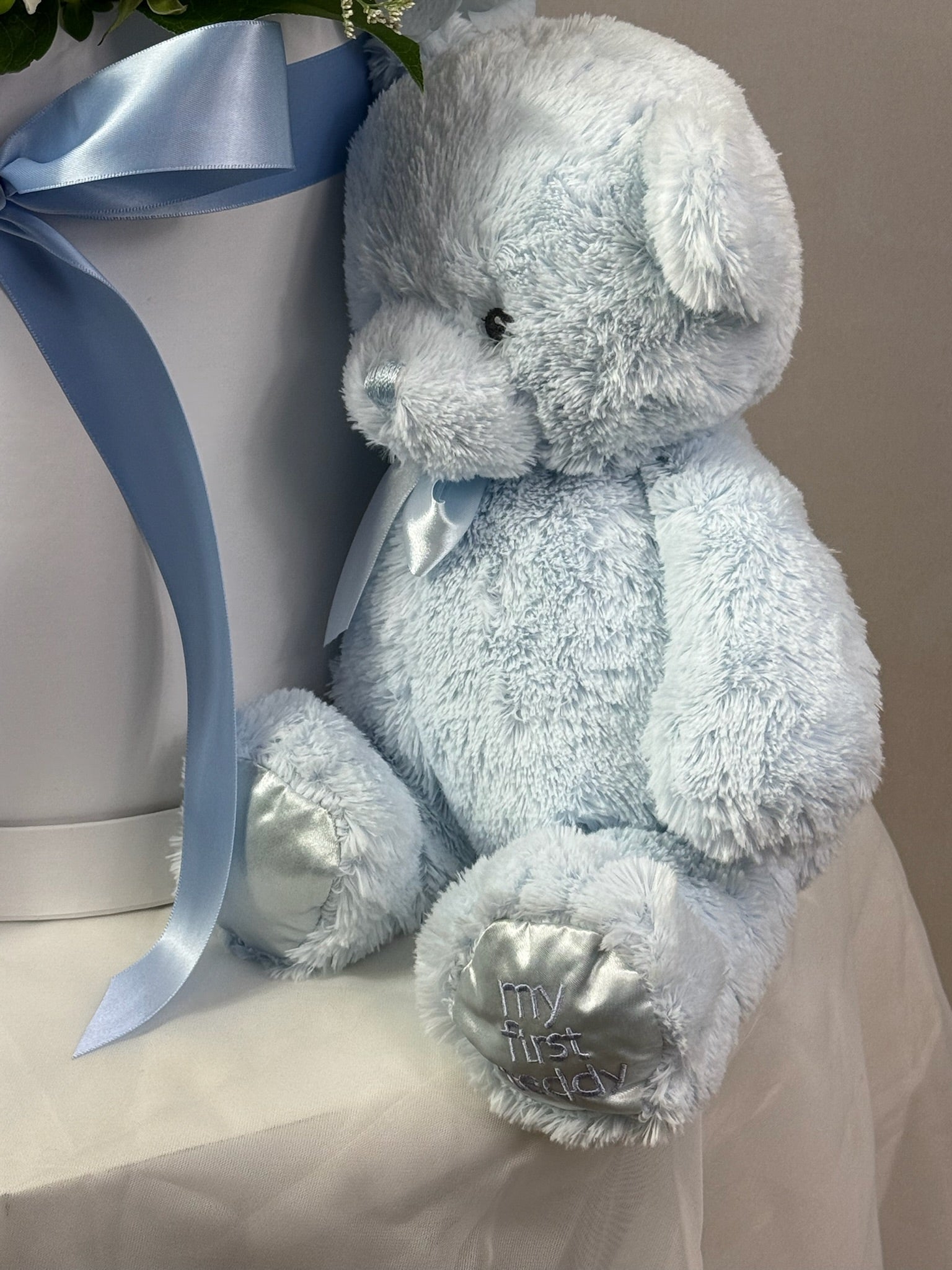 Paired with a soft plush teddy bear, this design is the perfect gift to celebrate a new bundle of joy. Lovingly arranged by your trusted florist in Paradise Valley, Welcome Baby Boy adds a touch of softness and joy to the occasion — a keepsake moment wrapped in blooms and love.