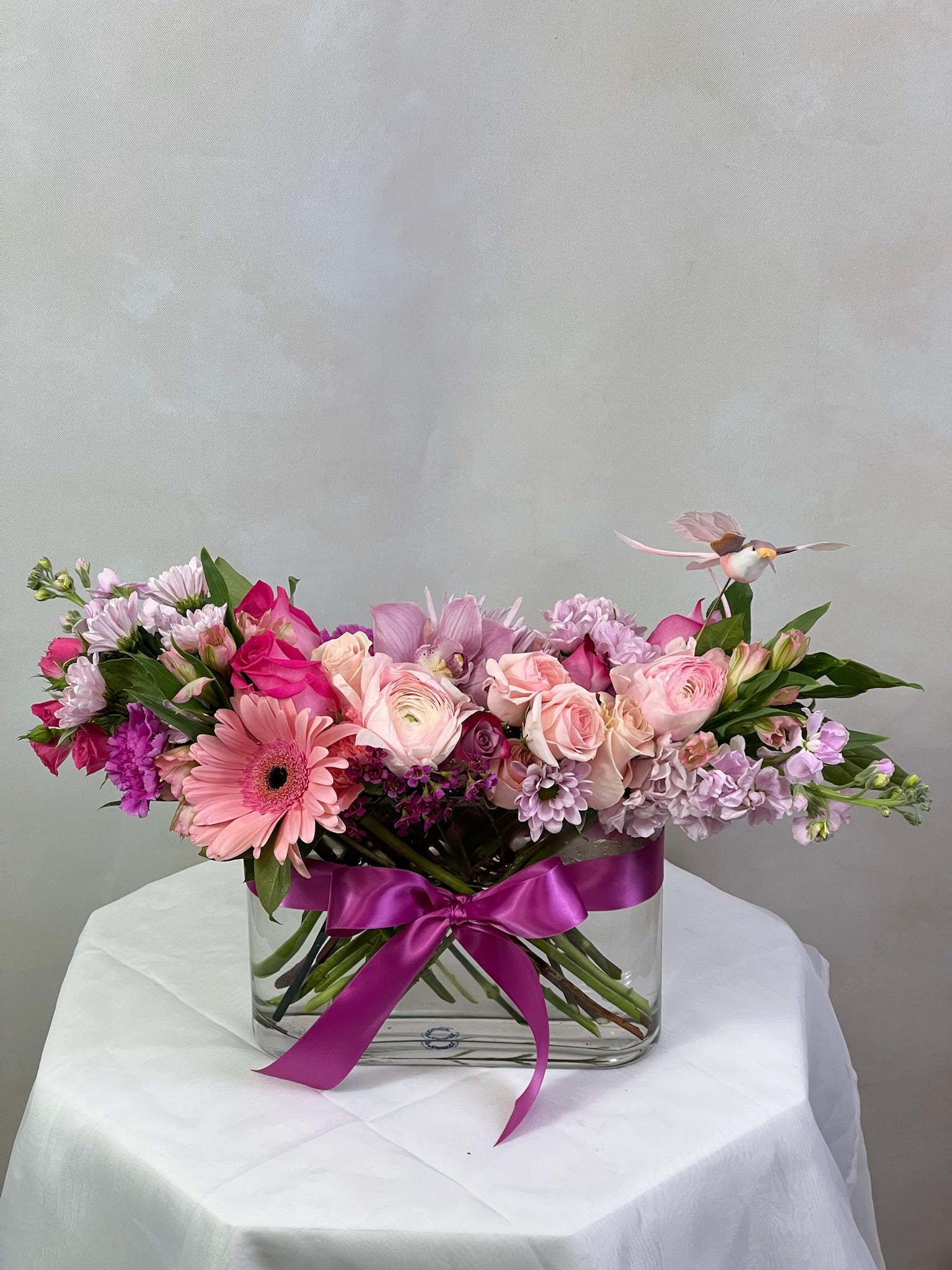 Introducing Colibri, a vibrant and captivating flower arrangement that captures the spirit and beauty of nature. Inspired by the graceful hummingbird, this arrangement features a stunning array of colorful blooms, delicately arranged to create a sense of movement and elegance. Each flower in Colibri is carefully chosen to reflect a palette of rich, bold colors that bring warmth and joy to any space.