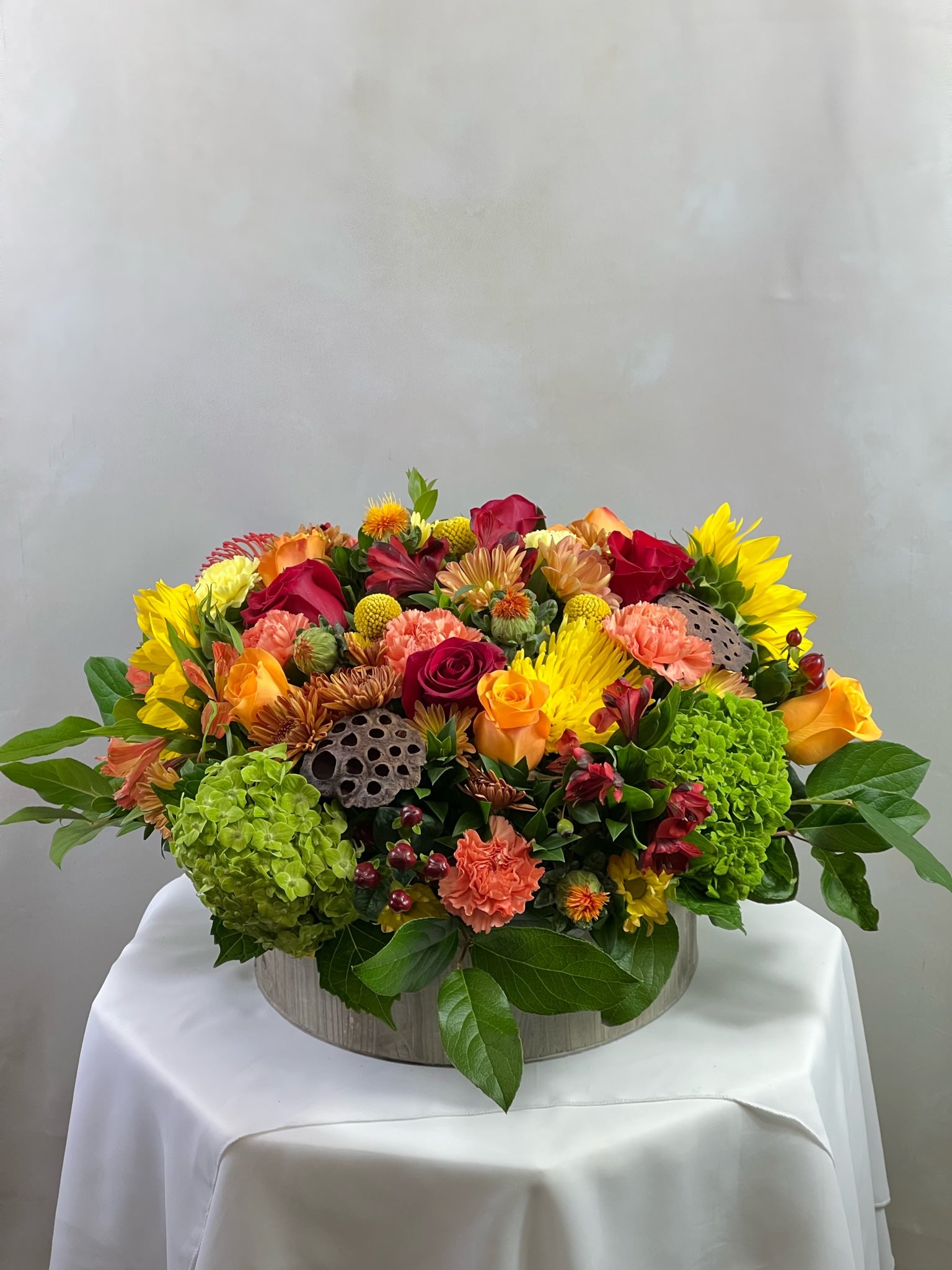 Step into a world of enchantment with our 'Fairy Radiance,' a spellbinding creation that transcends the ordinary and brings forth the magic of nature. Crafted by our expert florists in Scottsdale, this ethereal centerpiece is a symphony of Roses, Hydrangea, Pincushion, and Sunflowers, weaving a tale of beauty and grace. Spider Mums and Hypericum dance like woodland fairies, their intricate moves complemented by the whimsical charm of Eryngium and the timeless allure of Carnations. Cushion blooms and Alstroemeria add a burst of color, creating a vibrant meadow within the arrangement. The delicate foliage of Salal and Myrtle frames the composition, while the playful Billy Balls add a touch of spontaneity, evoking the magic of fairy realms.