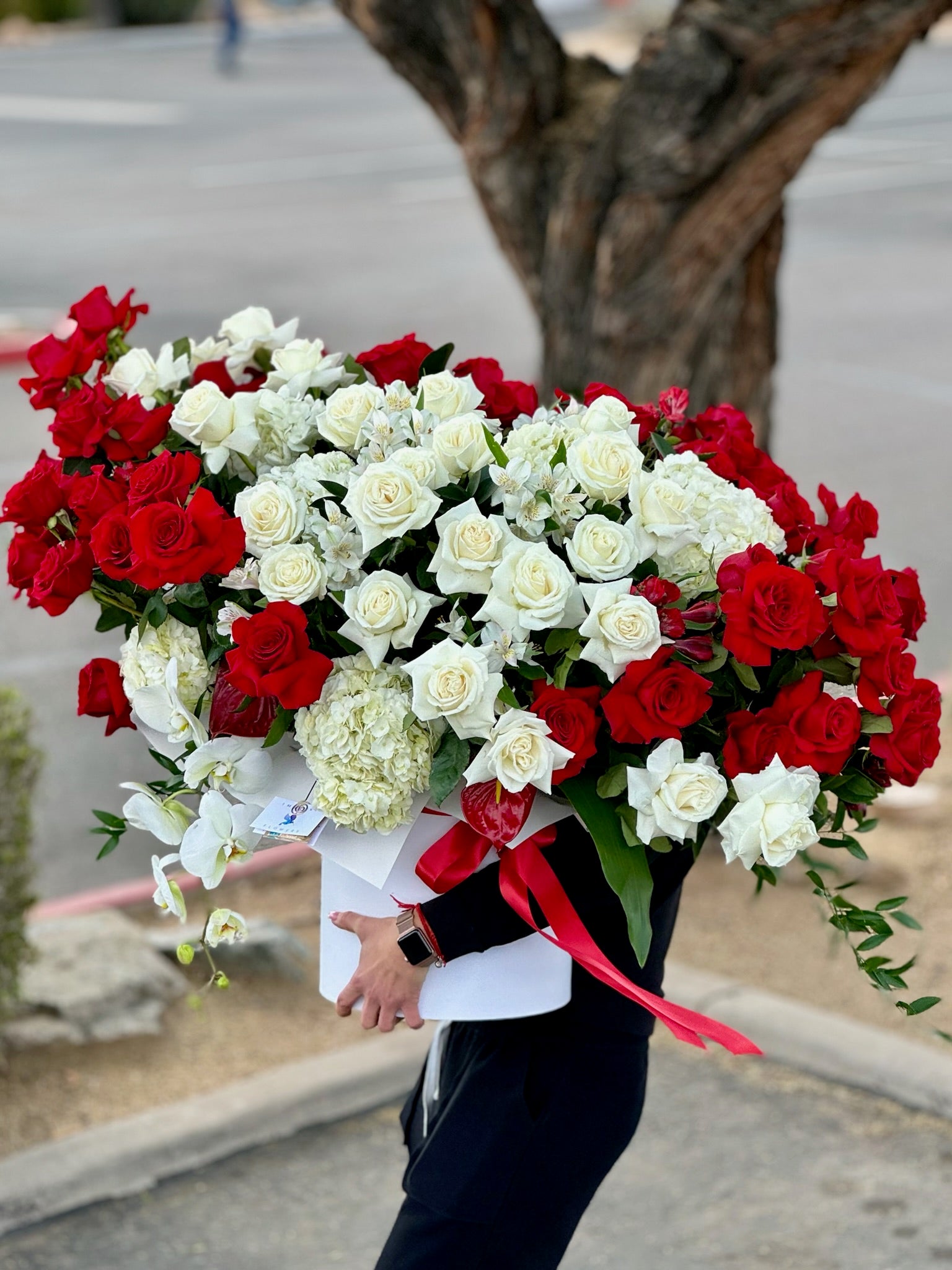 Experience the enchantment of 'Inspired Love,' a captivating flower arrangement meticulously crafted by our expert florists in Scottsdale. Immerse yourself in the timeless beauty of premium white and red roses, expertly arranged to evoke a sense of romance and elegance. Elevate your special moments with this exquisite creation, available for delivery through our flower shop in Scottsdale, AZ. Discover the perfect blend of passion and sophistication with 'Inspired Love' – a testament to our commitment to delivering unparalleled floral experiences to your doorstep.