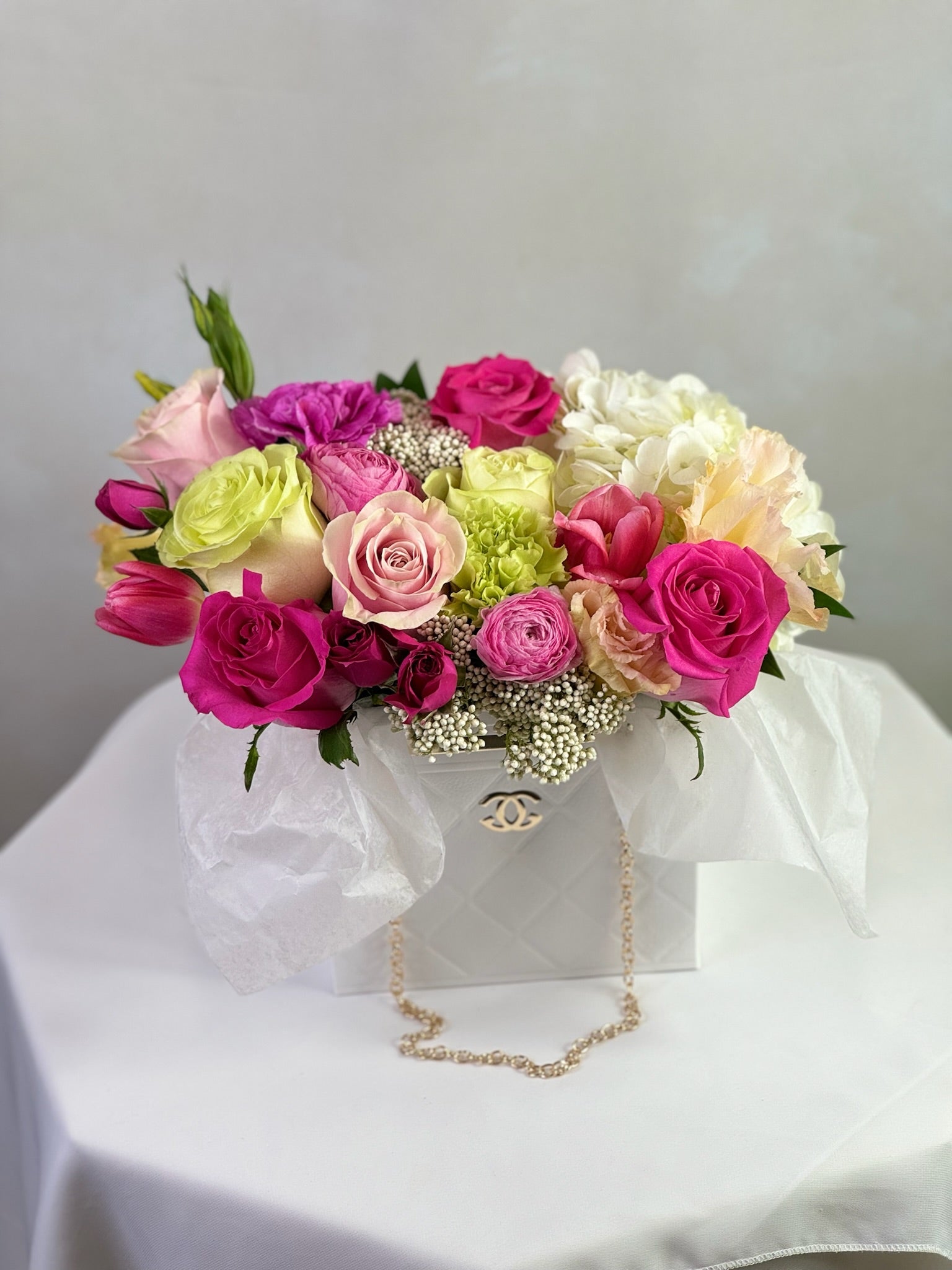 Discover the sophistication of our exceptional floral arrangement packaged with care by the best florist in Scottsdale. This distinctive creation harmonizes the enduring allure of fresh blossoms with the practicality of a chic tote, presenting an ideal gift or accessory for any event. Embrace the floral artistry, effortlessly cradled in your hand, and celebrate life's moments in Scottsdale, AZ. Reveal the sophistication of our exceptional floral arrangement expertly delivered through our top-notch flower delivery in Scottsdale.