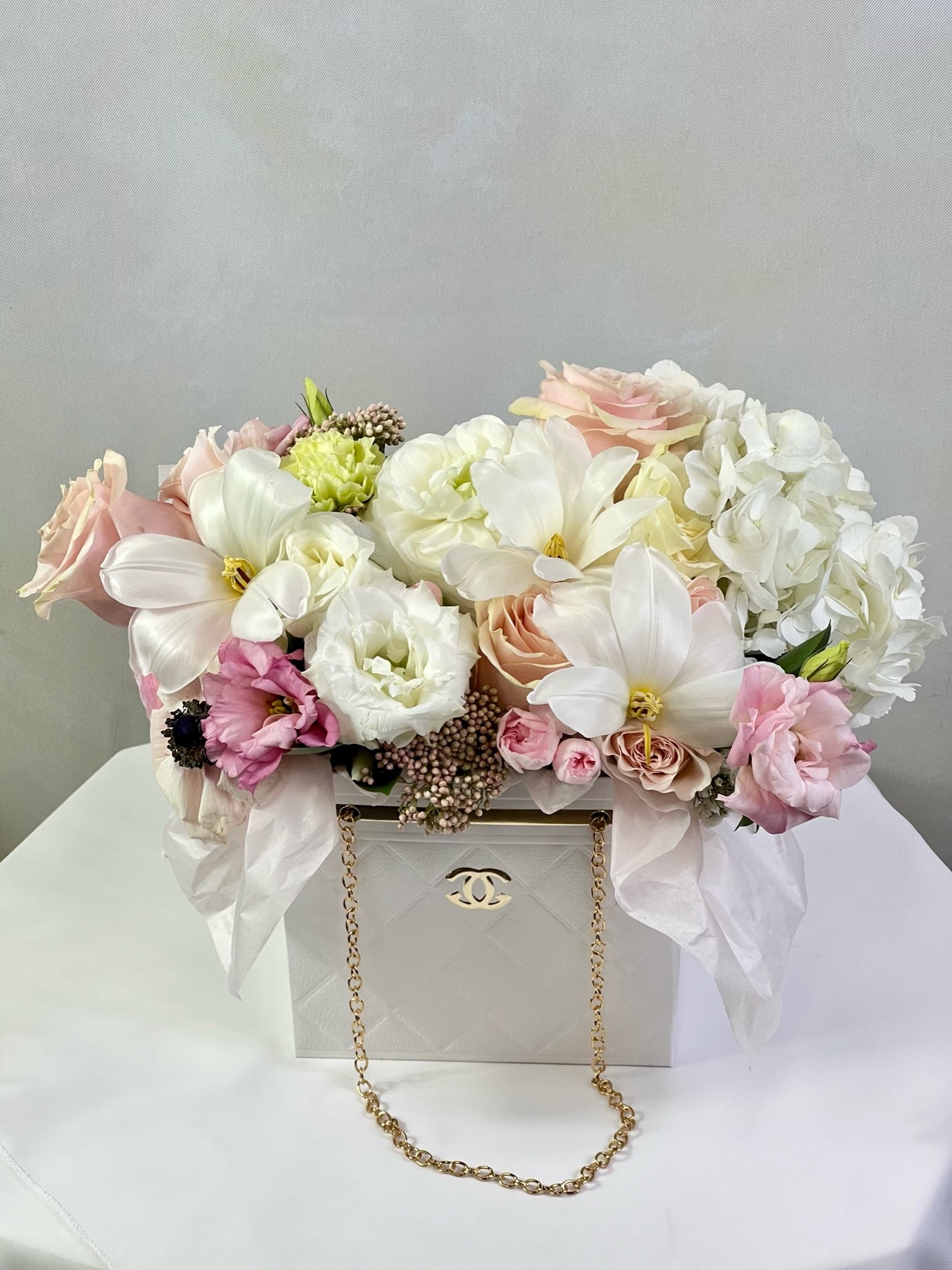 Unveil the elegance of our extraordinary floral arrangement in the bag, delivered with love through our expert florist in Scottsdale. This unique creation combines the timeless beauty of fresh blooms with the convenience of a stylish tote, making it a perfect gift or accessory for any occasion. Embrace the artistry of florals, effortlessly carried in the palm of your hand, as you celebrate life's moments in Scottsdale, AZ.