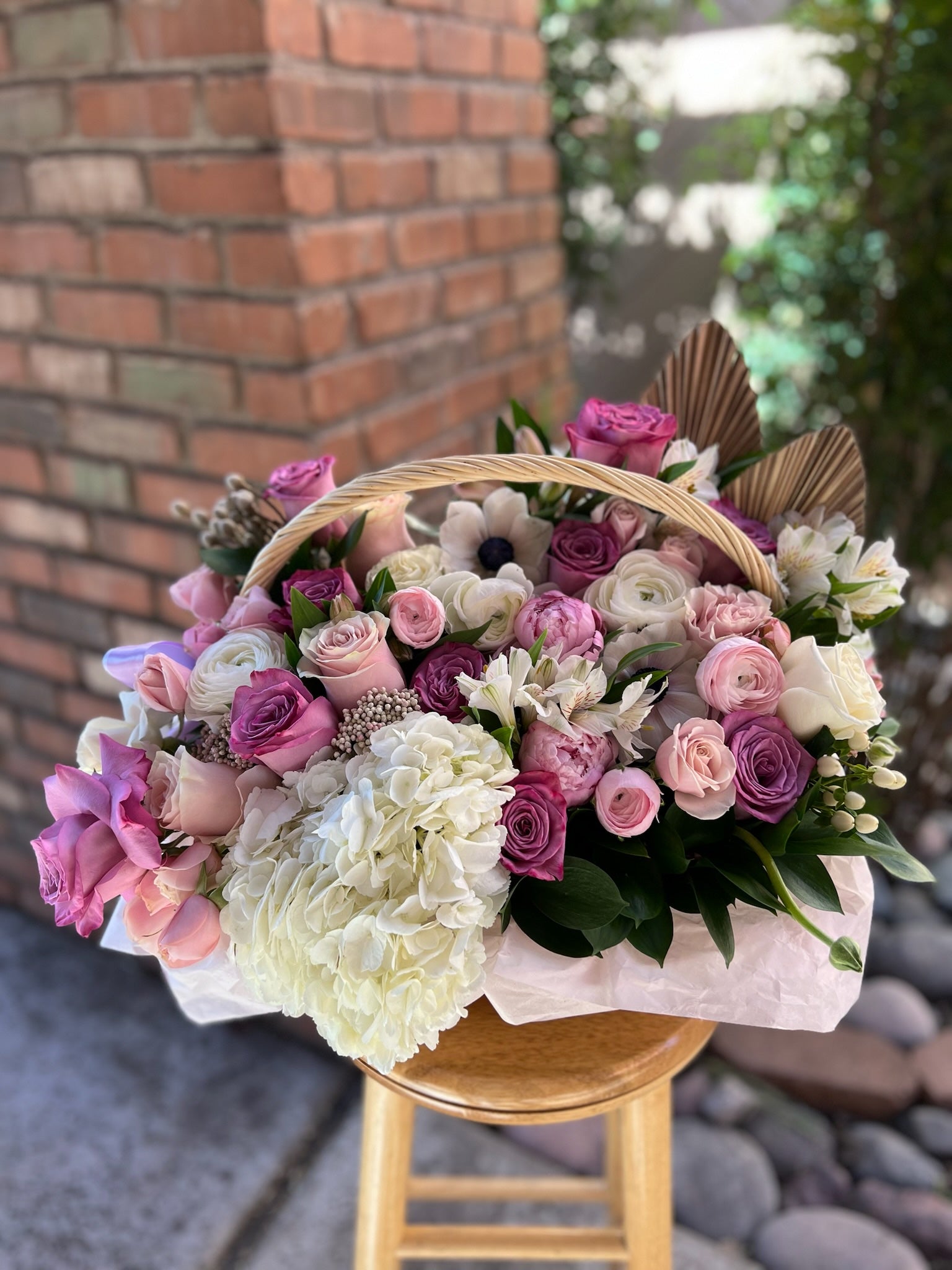 Discover the enchanting beauty of "Persephone" an exquisite basket of white and purple flowers expertly arranged to evoke the spirit of spring and renewal. This divine floral arrangement is the perfect way to express your sentiments, whether for a special occasion or just to brighten someone's day. Ideal for residents in Paradise Valley and Scottsdale, our flower delivery service ensures that "Persephone" arrives fresh and radiant at your doorstep or that of your loved ones. Choose our reliable service to send flowers in Paradise Valley or arrange for a swift flower delivery in Scottsdale, and let the serene beauty of these blooms speak volumes of your thoughtful gesture.