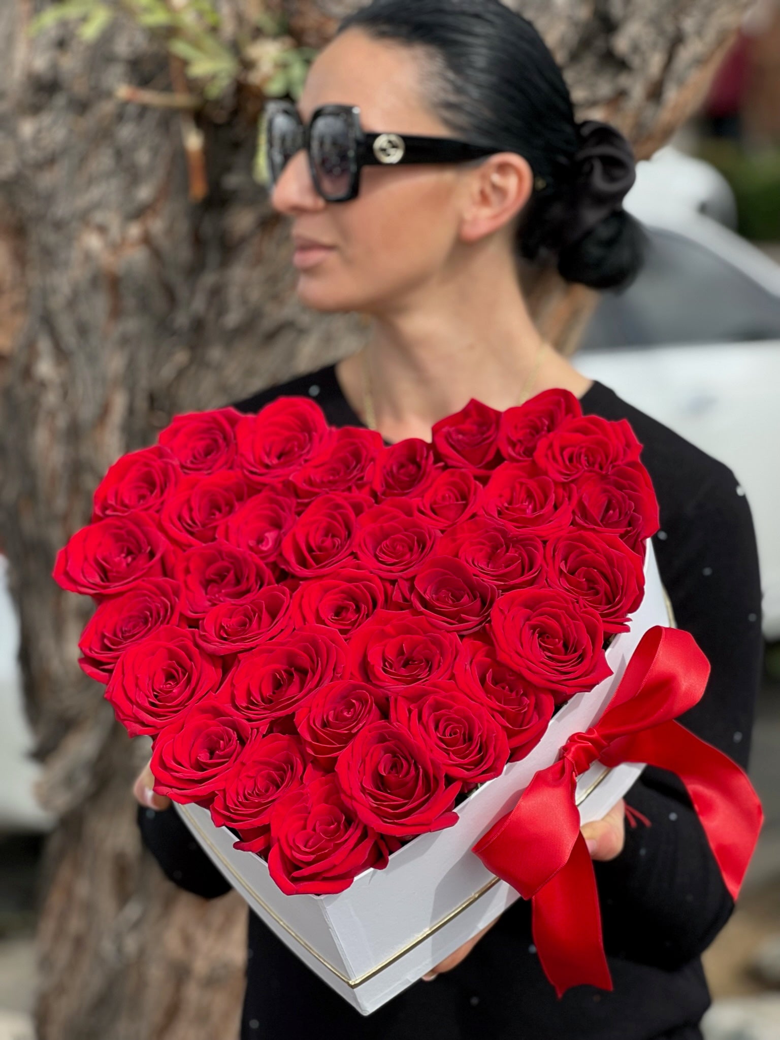 A heart-shaped box of red premium roses is a beautiful and tender gift that can be given on various occasions such as Valentine's Day or Mother's Day, anniversaries, or birthdays. Red roses symbolize love, gratitude, appreciation, and admiration, making them a perfect choice to express your affection towards someone special. The heart-shaped box adds an extra touch of sentimentality to the gift, as it represents the love and care you have for the recipient. Premium roses are usually of the highest quality, carefully handpicked, and arranged to ensure that they look beautiful and last longer. Overall, a heart-shaped box of red premium roses is a thoughtful and charming way to express your love and affection towards your mother, family member, or friend.